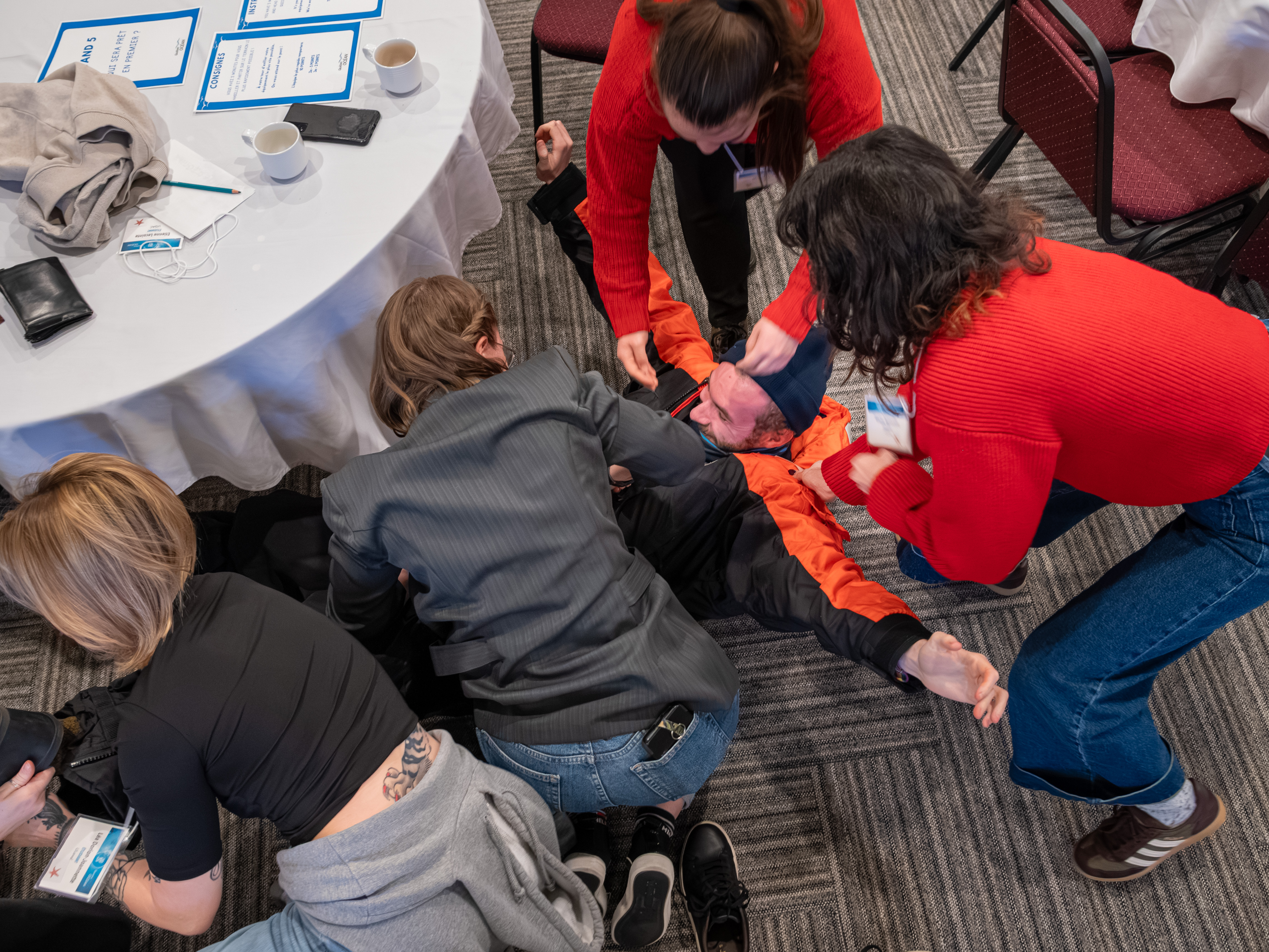 Afin de briser la glace à leur arrivée, le Comité Étudiant a préparé des défis brise-glace. Il fallait bien connaître son comité et les anecdotes de leurs représentant(e)s. Sauriez-vous sauter dans une combinaison de survie à la vitesse de l’éclair, dessiner les yeux bandés ou mettre à l’épreuve vos connaissances musicales marines? Les étudiants ont relevé les défis avec brio et plusieurs ont gagné des items aux couleurs de Québec-Océan, à porter fièrement! En soirée, ils se sont donné rendez-vous au centre-ville pour continuer à faire connaissance en participant à des activités muicales animées par le Comité Étudiant.